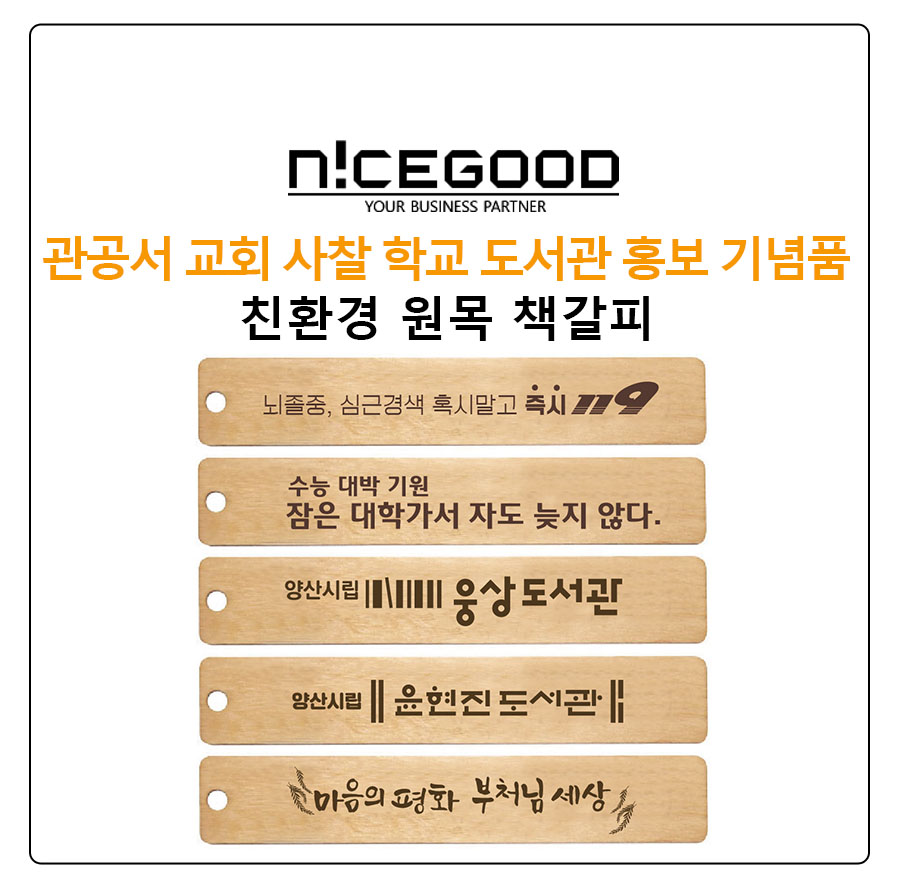 관공서 교회 사찰 학교 도서관 홍보 기념품 친환경 원목 책갈피 포장은 고리형 고급 OPP 포장으로 되어 있어 각종 굿즈로 판매하실 경우 깔끔하게 진열이 가능합니다.