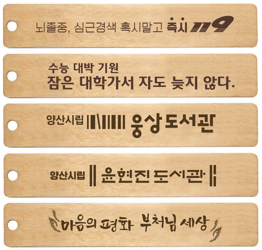 자작나무와 하드메이플 원목을 사용해서 은은한 향기가 매력적인 교회 행사 전도 도서관 홍보 기념품 성경말씀 원목 책갈피는 증정 대상에 따라 선택지가 넓고 오랜동안 사용이 가능해서 홍보효과도 뛰어납니다.