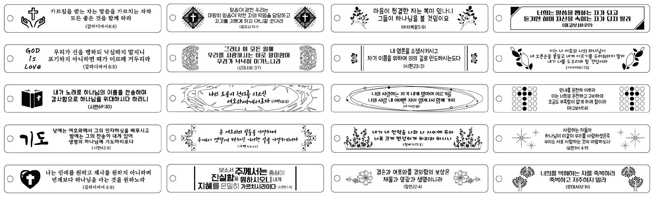 교회 행사 전도 도서관 홍보 기념품 성경말씀 원목 책갈피 가로형 디자인은 총 20개가 기본 디자인으로 준비가 되어 있고