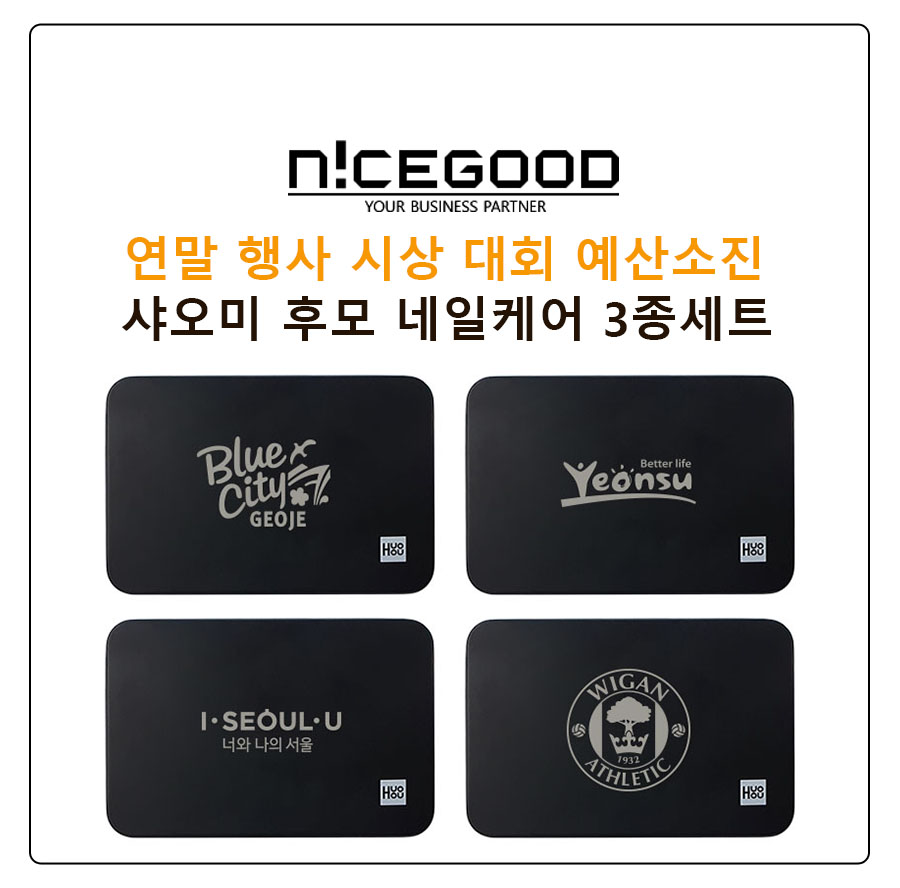 연말 행사 시상 대회 예산소진 기념품 홍보물 총람 3탄으로 준비한 7천원대 샤오미 후모 네일케어 3종세트를 소개드립니다. 연말 행사 시상 대회 예산소진 기념품 홍보물 총람 1, 2탄은 아래 포스트를 참고 하시기 바랍니다.