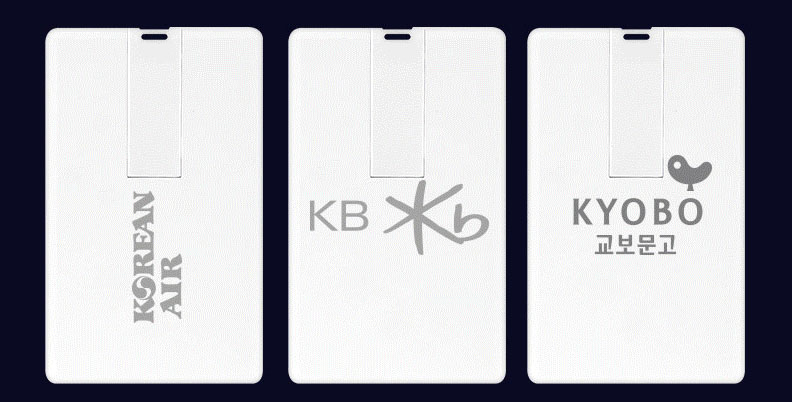 4GB~128GB까지 다양한 용량으로 제작이되며, 카드타입이라 보관이 용이해서 판촉물이라 기념품, 홍보물품으로 사랑받고 있는 제품입니다. 2mm의 슬림한 두께로 지갑에도, 가방에도 부담없이 보관하고 꺼내 쓸 수 있는 제품입니다.