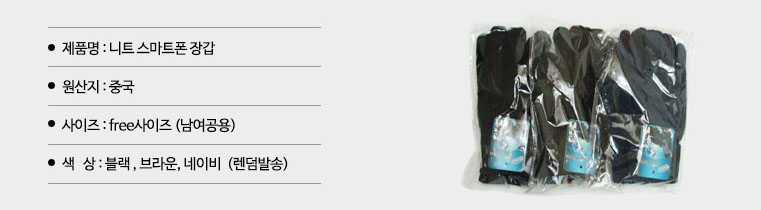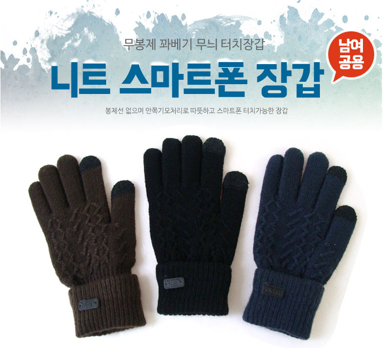 니트 스마트폰 터치 장갑을 착용한 상태로 스마트폰을 사용할 수 있게 엄지과 검지에 정전식 터치채널이 부착되어 있습니다. 건설현장, 산업현장, 전기공사, 인테리어 업체에서 직원 선물로도 매년 겨울 꾸준하게 소진이 되는 인기 상품입니다.