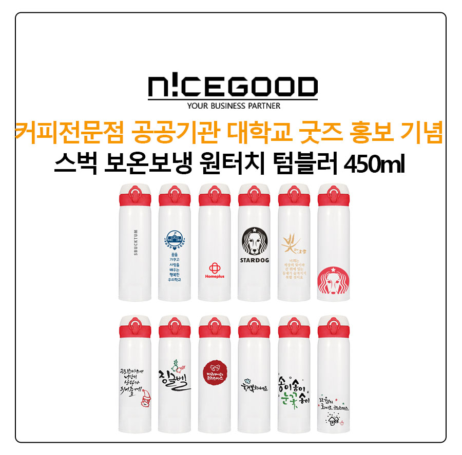 커피전문점 공공기관 대학교 굿즈 홍보 기념 스벅 보온보냉 원터치 텀블러 450ml는 식약청 성분 검사를 통과한 안전한 제품으로, 납성분이 검출되지 않은 이중진공 보온보냉 텀블러입니다.