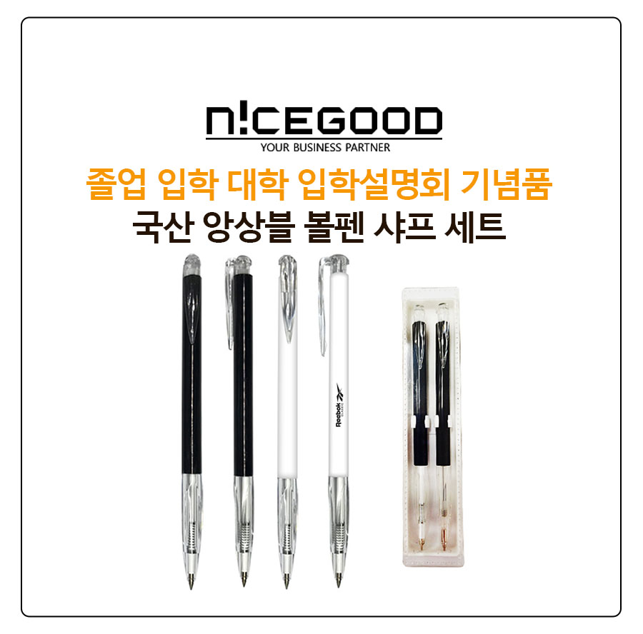 졸업 입학 대학 입학설명회 기념품 국산 앙상블 볼펜 샤프 세트는 졸업입학 관련 기념품 외에도 교육기관 홍보물품 또는 브랜드 홍보물품이나 고객사은품, 학원 홍보물, 판촉물 등으로도 사랑을 받는 제품입니다.