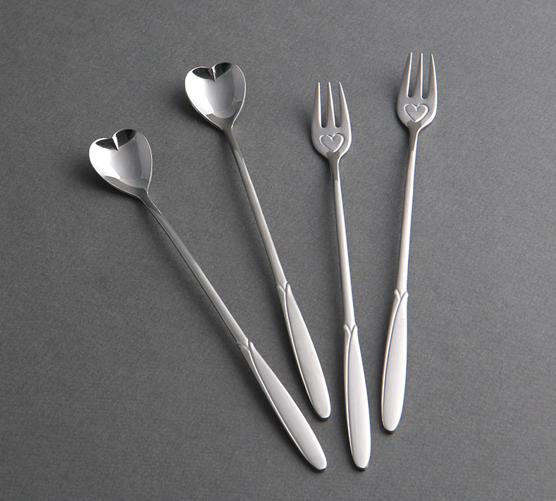 최고급 스테인리스 27종 STS304로 제작된 롱스푼 롱포크세트는 깊은 머그잔이나 텀블러에 사용 시에 유용한 제품으로 스푼 디자인이 하트 모양으로 되어 있어 독특하면서도 아기자기한 디자인이 강점인 국산 제품입니다.