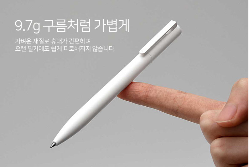 샤오미 네츄럴 볼펜은 탁월한 필기감은 스위스 MIKRON 의 기계로 가공된 0.5mm의 고정밀 스프링 펜촉에 있고, 뚜껑 방식이 아닌 볼펜 일체형 클립을 내리는 노크방식으로 사용합니다.