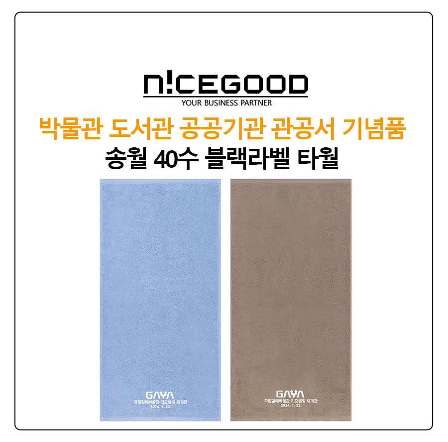 박물관 도서관 공공기관 관공서 기념품 송월 40수 블랙라벨 타월 세트는 매년 기념품을 의뢰 주시는 국립김해박물관에서 인테리어 후 재개관 기념품으로 최종 진행이 된 사례입니다.