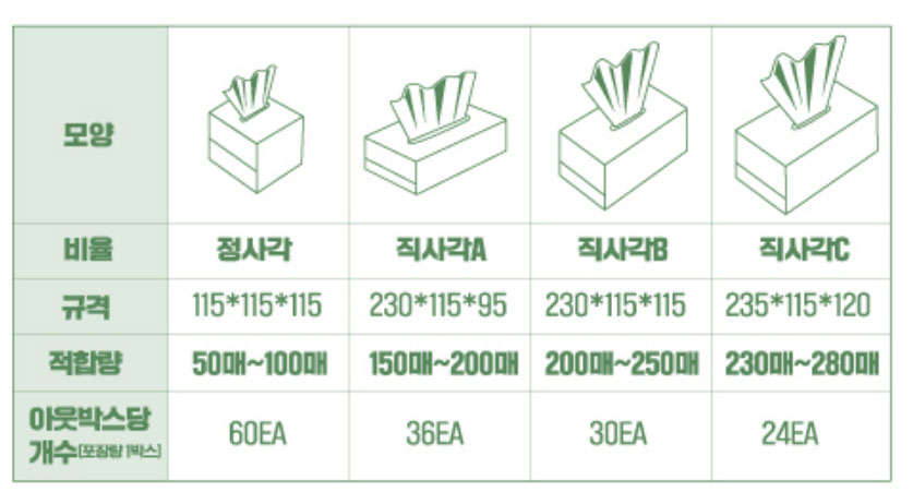 일반 굿즈 기념품, 판촉, 사은품 아이템에 비해 상대적으로 부피가 큰 각티슈, 갑티슈는 기본수량 500개를 진행하실 경우 약 14박스 전후의 아웃박스로 출고가 됩니다.