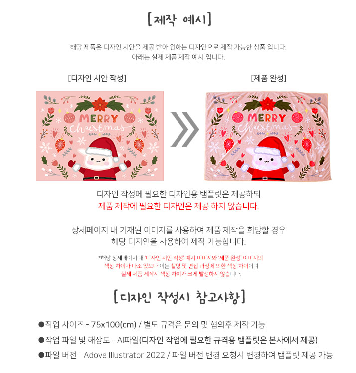 겨울 행사 박람회 교회 크리스마스 아이돌 팬클럽 스포츠 굿즈 홍보물 기념품 디지털 컬러 극세사 담요 제작과정이 다소 복잡하여 디자인 부서나 담당자가 없는 일반 기업이나 단체 교회 개인 고객은 시안 작업 자체가 어렵거나 불가능할 수 있습니다.