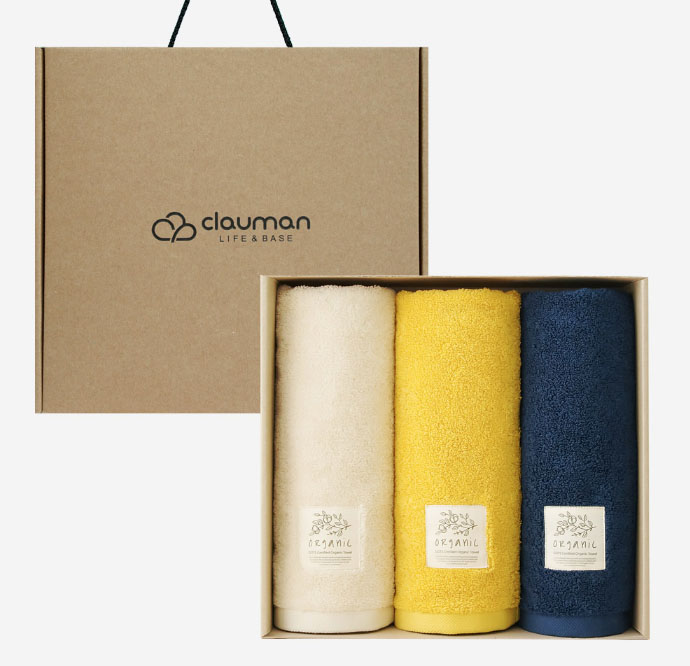 오가닉 타월 색상 컬러는 베이지와 옐로우 네이비 별도로 진행도 가능하시고 2P, 3P 등 세트 구성도 가능합니다.