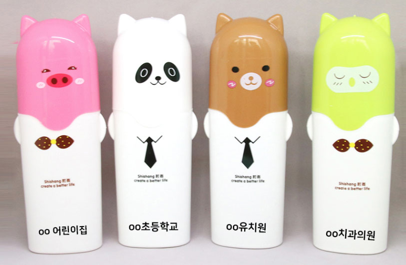 과일 캐릭터 양치 케이스 외에도, 동물 캐릭터 양치 케이스도 어린이집이나, 학교, 유치원, 치과의원 등의 기념, 홍보, 굿즈, 필수품으로 꾸준하게 인기를 유지하고 있는 재품입니다.