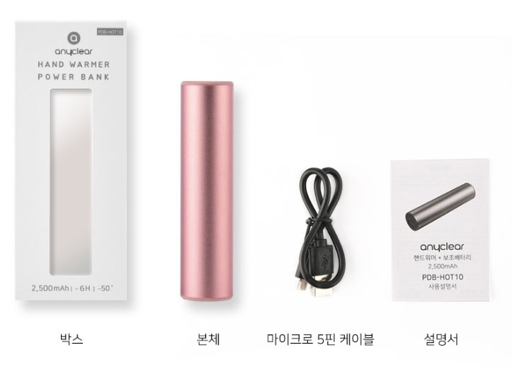 판촉물 기념품 나이스굿>컴퓨터/전자,보조배터리-애니클리어 휴대용 손난로 보조배터리 HOT10 2500mAh,기념품, 답례품, 단체선물, 분양사은품, 모델하우스, 창립기념일, 행사기념품 상품 상세페이