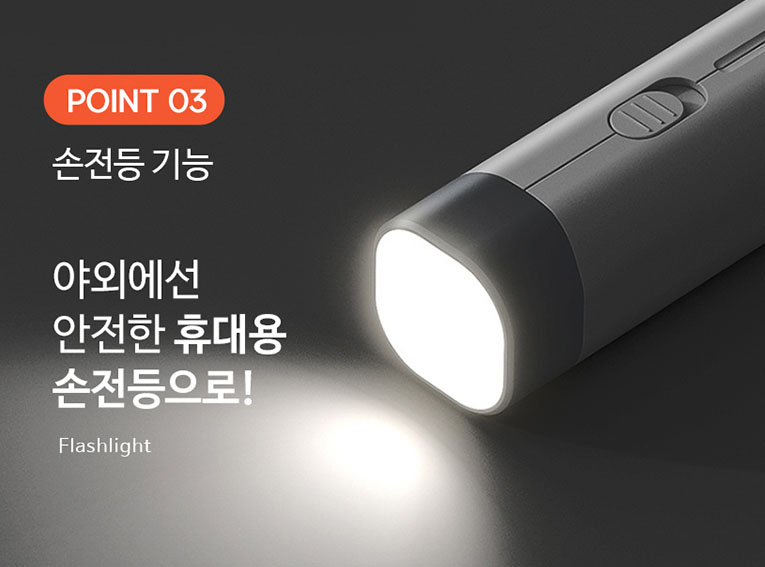 LED 헤드부분을 빼지 않고 내장된 상태일 경우 초소형 LED 손전등으로 활용이 가능하며, 야외활동이나 자동차 등에서 간편하게 사용하실 수 있습니다.