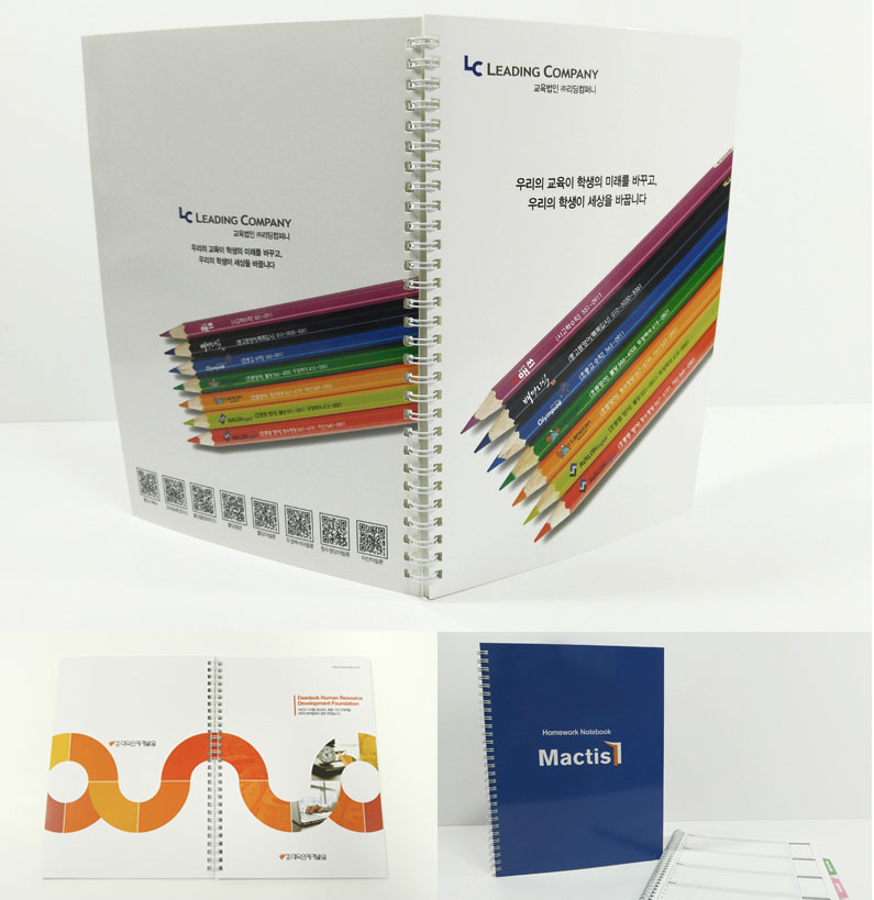 초, 중, 고, 대학교부터 학원과 교육기관 그리고 교육컨텐츠 관련기업의 신학기 홍보 마케팅에 가장 많이 활용되는 아이템이 주문제작형 인쇄 노트입니다. 표지를 풀컬러로 인쇄됨과 동시에 상대적으로 넓은 인쇄영역과 인쇄 품질도 면에서 각광을 받고 있습니다.