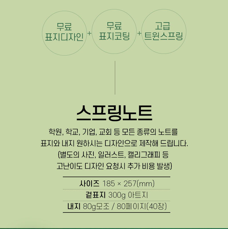 주문제작노트 홍보노트 B5스프링 표지변경가능