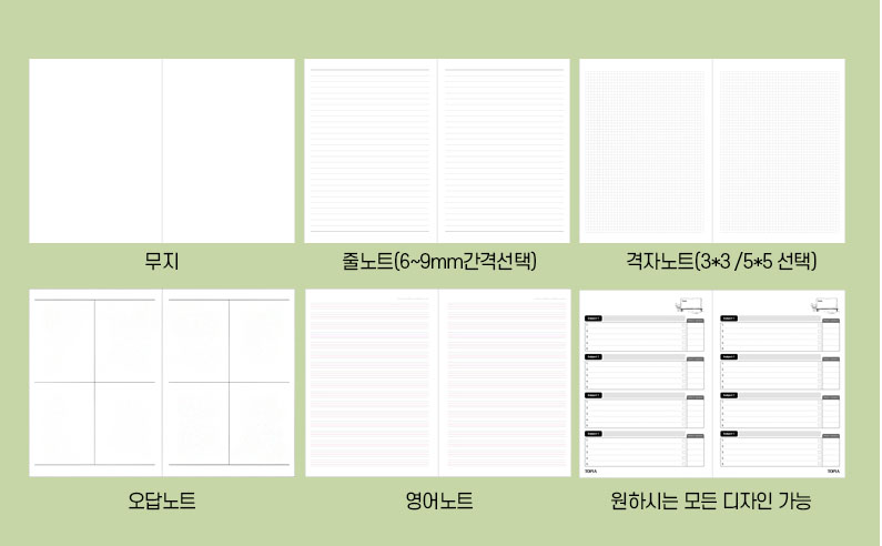 그리고 무엇보다 중요한 부분인 내지의 디자인 선택이 다양해서 입시학원, 일반 초중고, 대학, 대학원 등 사용 환경에 맞게 활용이 가능하다는 특장점이 있다는 것입니다.