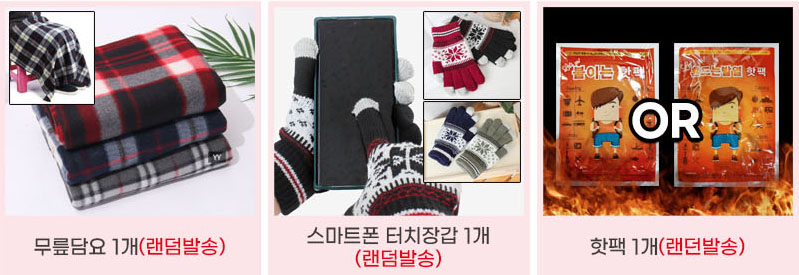 알뜰 실속 가성비 명절 설날 선물세트 모음전 첫 번째 아이템은 메인 이미지에서 보시는 바와 같이 무릎담요와 휴대전화 터치가 가능한 눈꽃터치장갑 그리고 핫팩으로 구성된 제품입니다.