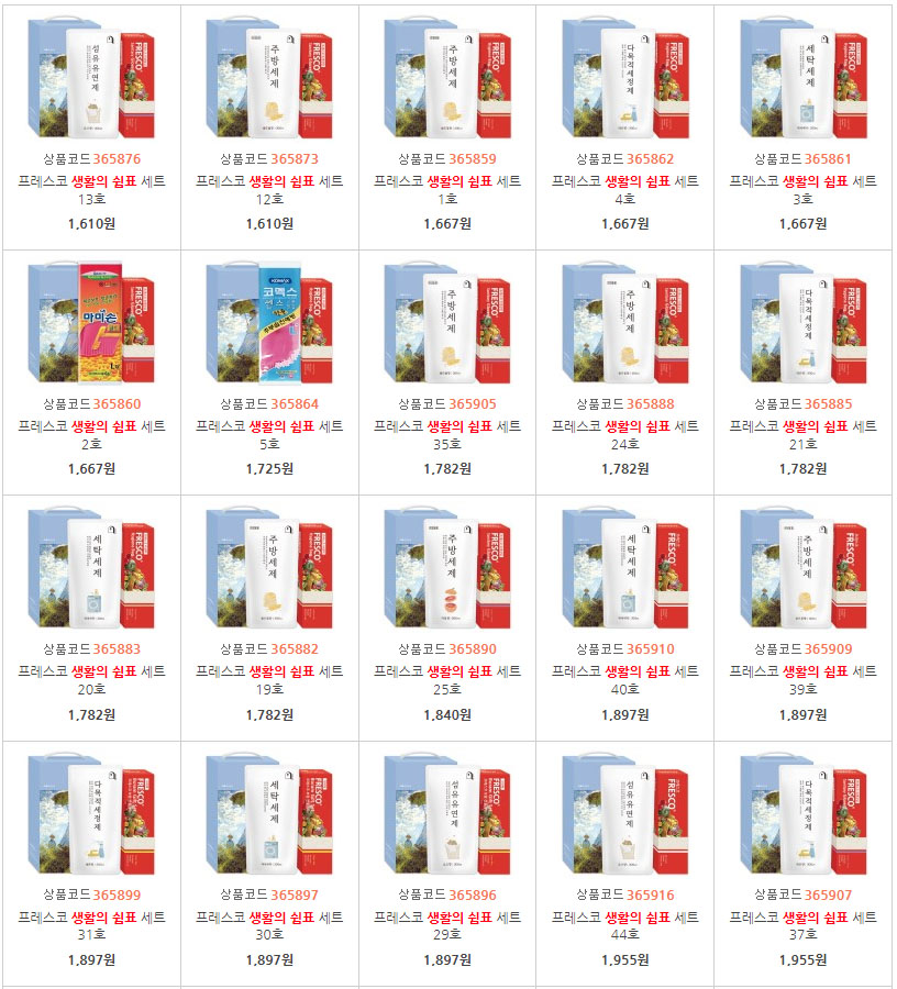 알뜰 실속 가성비 명절 설날 겨울 홍보용 선물세트 모음전은 생활용품이나 주방세제, 욕실용품 등을 도매가로 조합한 기획전 제품으로, 알찬 구성으로 주는 분과 받는 분이 모두 만족하실 수 있