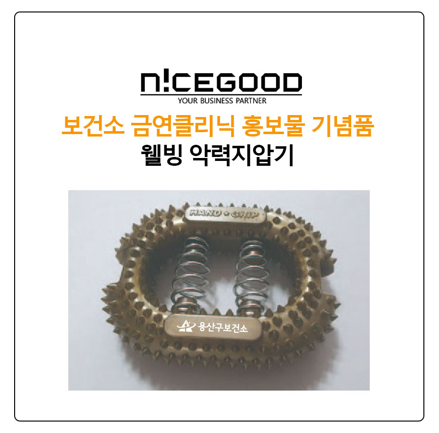 보건소 금연클리닉 홍보물 기념품 웰빙악력지압기는 지속적으로 거래를 해주시는 서울 용산보건소에서 주문하신 건으로, 병원이나 보건소 또는 의료복지 관련 기관에서 꾸준하게 발주를 주시는 아이템입니다.