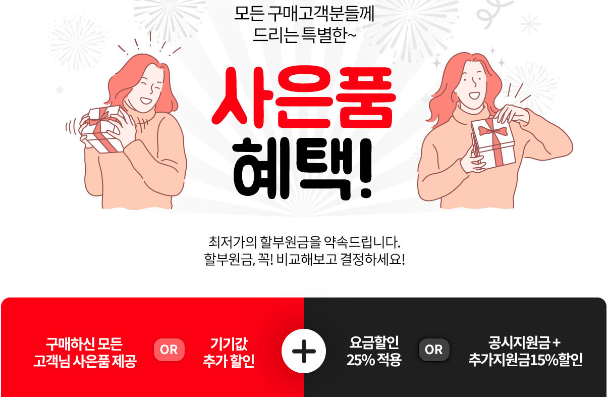 자, 여기가 중요합니다. 사은품을 받을 것이냐? 아니면 매월 부담하는 요금이나 할부 분납금 부담을 줄이느냐?