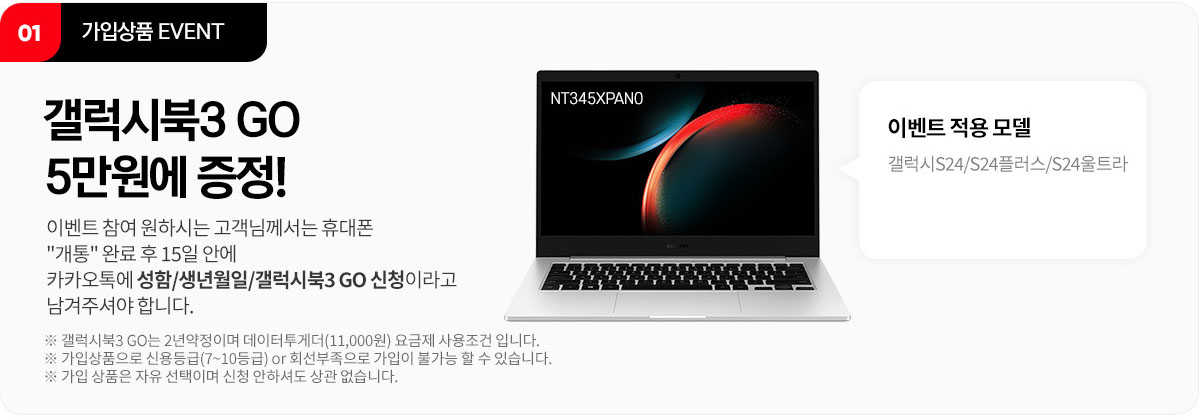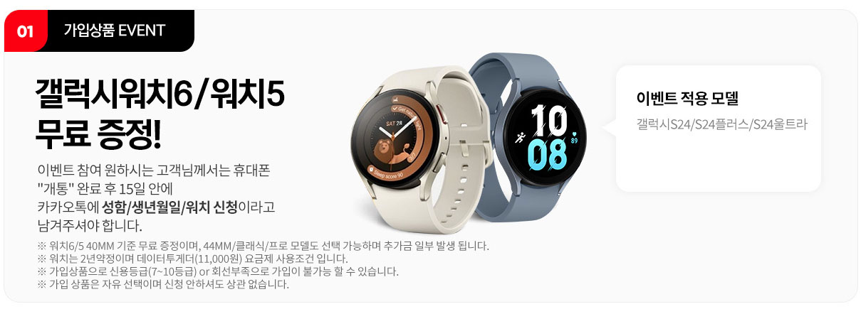 갤럭시 S24 울트라 사전예약 갤럭시워치 또는 탭, 갤럭시북 등 사은품을 추가로 받으실 경우 LTE제품이며 월 11,000원의 요금제로 사용을 하시는 조건이니 이 부분은 고려하셔서 신청하시거나, 안 하셔도 됩니다.