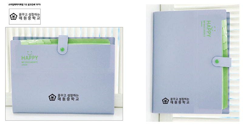 매원중학교 학사 행정 관리 물품 도큐먼트 파일은 12개의 칸으로 구분되어 있어 선생님들의 월간 업무 정리에 활용이 용이하며, 연보라, 블루, 분홍, 민트, 연두 총 5개 색상이 있으면 색상 선택은 불가하고 골고루 혼합해서 진행이 됩니다.