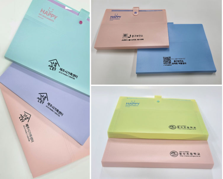 매원중학교 학사 행정 관리 물품 도큐먼트 파일 인쇄 예시를 보시면 아시겠지만, 보건소나 관공서, 공공기관은 물론이고 학교 학원, 교육컨텐츠 홍보물, 대학교 웰컴 굿즈나 축제 기념품 홍보물 등으로도 매우 다양하게 활용이 되고 있습니다.