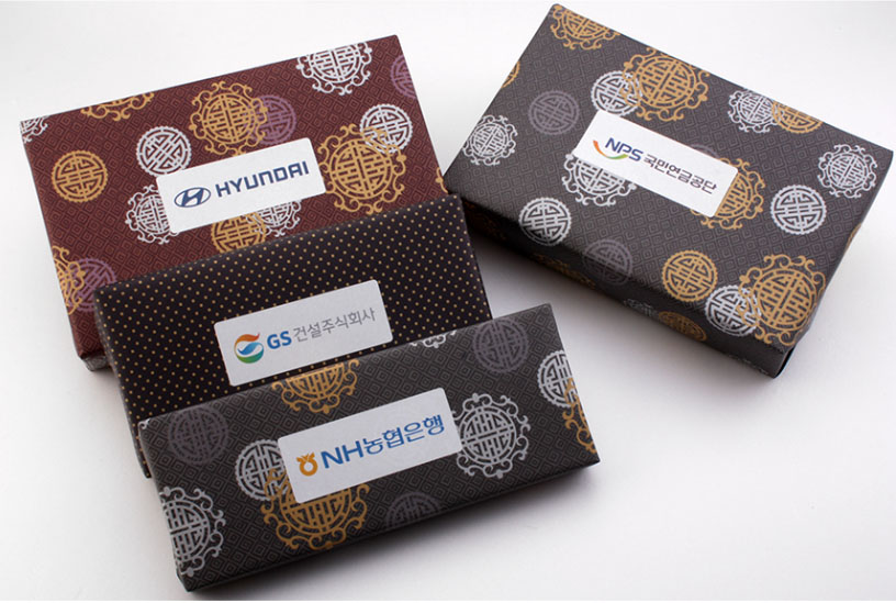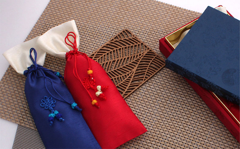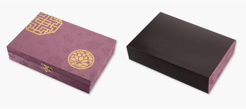 250mm*165mm*55mm의 청홍 비단주머니에 넣어 전용 우단케이스로 안전하게 포장된 후, 다시 한 번 다양한 포장지로 선물포장을 거쳐 출고가 됩니다.