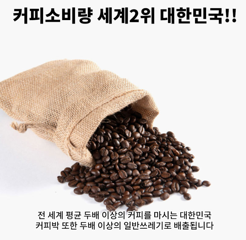우리가 마시는 커피는 원두에서 고작 0.2%의 추출된 원액이며 나머지 98.8%는 일반쓰레기로 버려진다