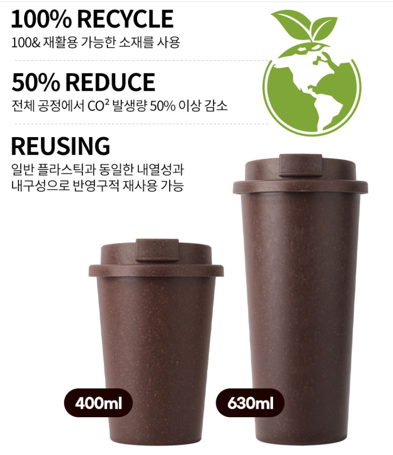이런 버려질 커피 찌꺼기를 수거 활용해 만든 친환경 텀블러를 국산화 후, 제품에 인쇄를 추가한 판촉물 기념품 홍보물품 제품이 계속 출시되고 있습니다.