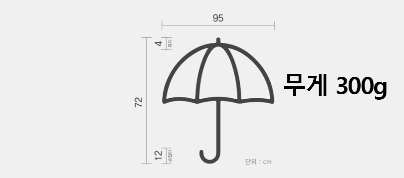 시야확보에 유리한 투명 반사띠 안전우산는 300g이라는 가벼운 무게에 펼친 직경이 95Cm, 높이가 72Cm로 미취학 아동부터 초등학생, 어르신 등이 사용하시기에 적합한 스펙을 가지고 있습니다.