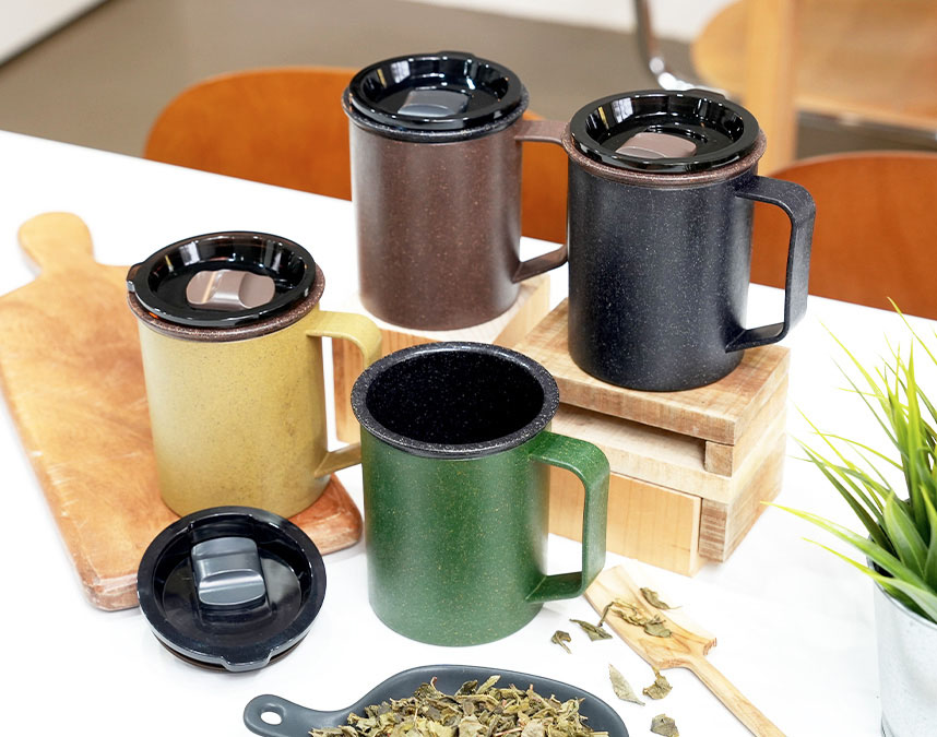 이런 일련의 과정을 거쳐 플라스틱을 대체할 수 있는 친환경 소재로 만든 머그는 첫 째 일반 도자기형 머그 보다 매우 가벼워, 사용이 용이하고 강성을 유지하면서도 떨어뜨려도 파손이 되지 않습니다.