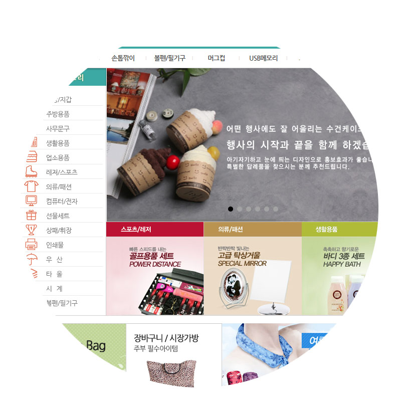 각종 판촉물, 기념품은 물론이고 관공서, 공공기관, 박물관, 도서관, 보건소 외에도 지자체 행사 잔치 답례품, 아파트분양사은품, 모델하우스방문기념품, 대회기념품, 골프대회기념품, 학술회기념품, 세미나기념품, 대학홍보물, 학교홍보물, 학교행사기념품 등 전국에 유통중인 판촉물을 모두 공급하고 있습니다.
