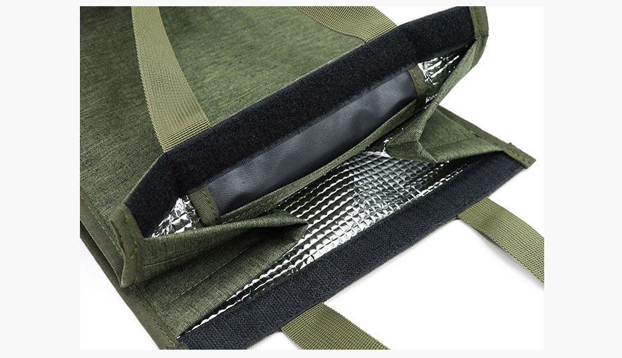 홍보용 컬러 보온보냉백 입구는 일명 찍찍이, 벨크로 잠금으로 마감이 되어 있어서 냉온유지를 돕고 편리하게 열고 닫을 수 있고, M자형 구조이기에 접어서 벨크로로 마무리를 하면 부피를 최대한 줄일 수가 있습니다.