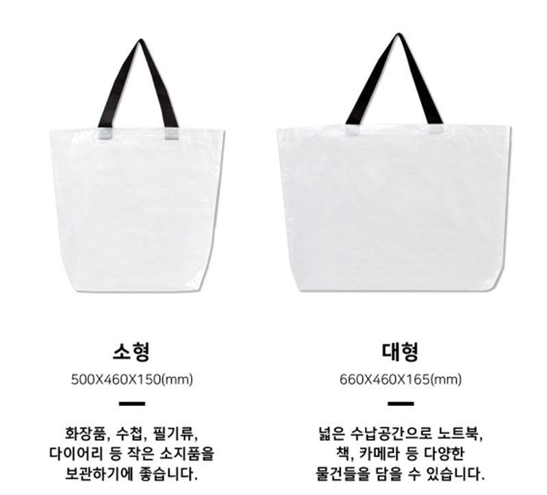 관공서 공공기관 보건행정 보건소 홍보용 반투명 타포린 가방 디자인과 사이즈는 두 종류가 있으며 대형과 소형으로 나뉘어 집니다.