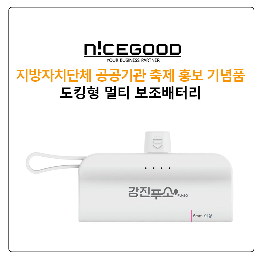 방 자치단체 공공기관 축제 홍보 기념품 도킹형 멀티 보조배터리는 늘 감사하게 의뢰를 주시는 강진군 문화관광실 푸소팀에서 추가 홍보 기념품으로 제작을 요청하신 건입니다.