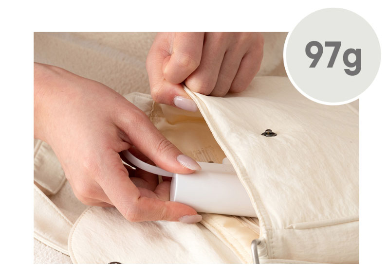 그럼에도 불구하고 5000mAh 대용량이면서 무게는 단지 97g, 사이즈는 8센티미터도 채 안 되는 크기입니다.