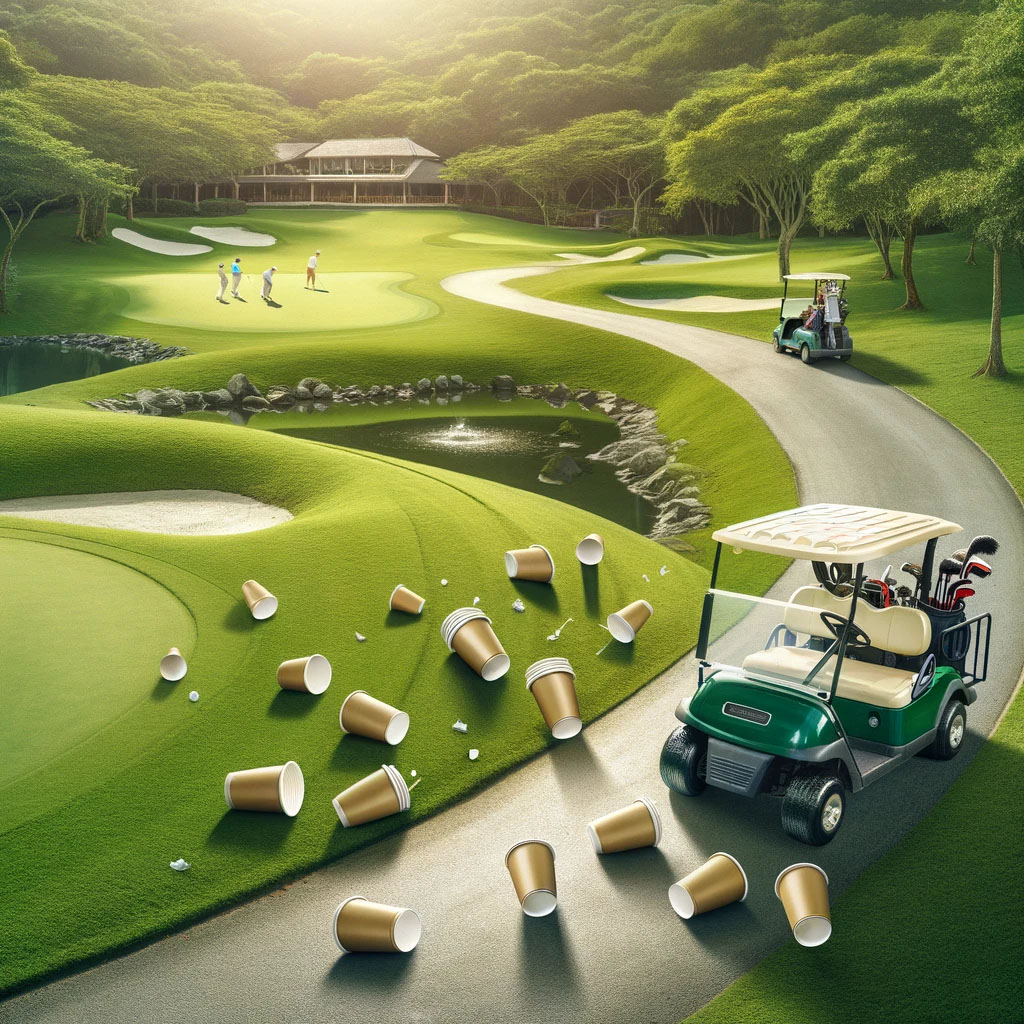 그 결과 사용 후 잠시 카트 뒤 비닐봉지에 넣어둔 종이컵이 강한 바람에 날아가거나 일부 내장객은 대충 카트 뒤에 올려 놓는데, 골프장이란 곳이 바람이 잦은 산속에 위치해 있어 코스에 종이컵이 안 보일 때가 없었습니다.