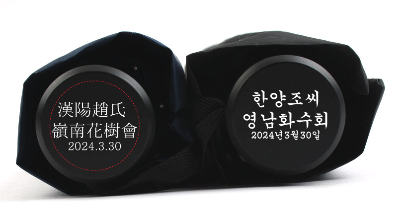 종친회 칠순 팔순 창립기념일 체육대회 초경량 다이소 3단우산을 한양조씨 영남화친회에서 금요일 밤에 문의를 주셨고, 월요일 일찍 유선으로 다시 문의를 주셔서 급히 시안을 드렸고, 한글과 달리 한자는 획이 많아 인쇄 품질을 고려해 최대한 얇은 서체를 적용했습니다.