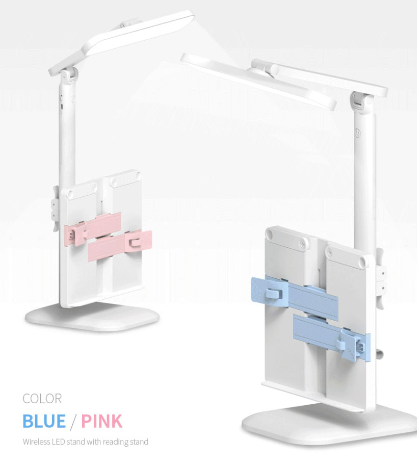 도서관의 날 독서실 학원 홍보 마케팅 만능 무선 LED스탠드 독서대 거치대는 블루와 핑크 두 색상으로 출시 되었으며, 반영구적 수명의 32개 LED 램프는
