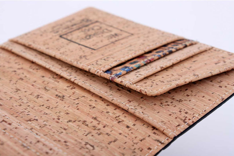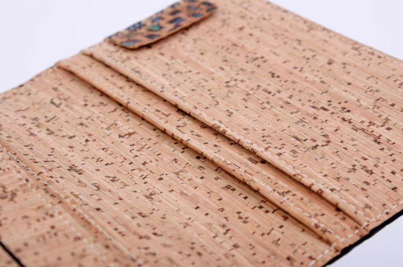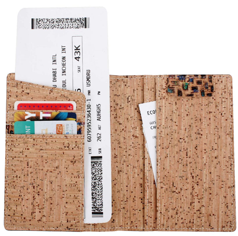 친환경 지속 가능한 식물가죽 국산 나무껍질 코르크 여권지갑 디테일은 겉감과 같은 원단을 카드홀더와 페이지 홀더로 포인트를 주어 실용성과 디자인을 향상시켰습니다.