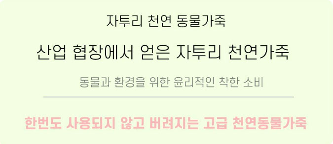다만 산업 현장에서 수거한 한 번도 사용하지 않은 자투리 천연가죽으로 동물과 환경을 위한 윤리적인 착한 소비를