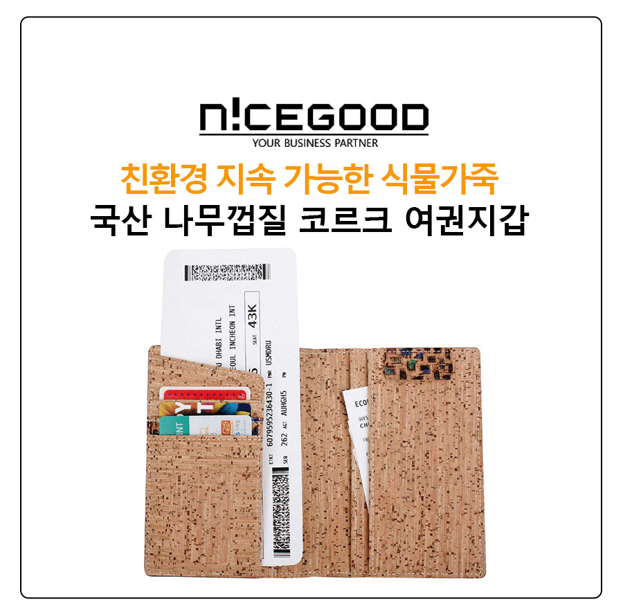 판촉물 기념품 나이스굿>가방/지갑,여권지갑/네임텍-여권지갑 나무껍질 코르크 식물가죽 친환경,기념품, 답례품, 단체선물, 분양사은품, 모델하우스, 창립기념일, 행사기념품 상품 상세페이지