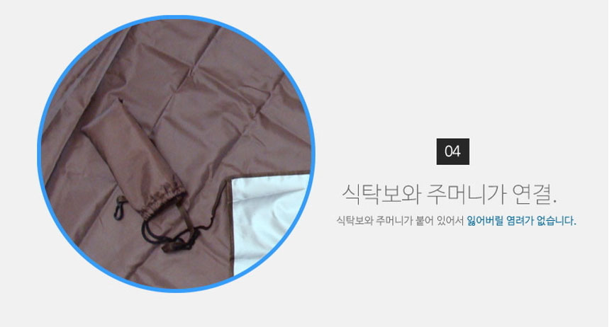 산악회 동호회 체육대회 단체 기념품 등산 캠핑용 식탁보 겸 돗자리의 뒷면은 방수원단으로 제작되어 있고, 돗자리와 파우치가 연결이 되어 있어 분실의 우려가 없이 간편하게 사용하실 수 있습니다.