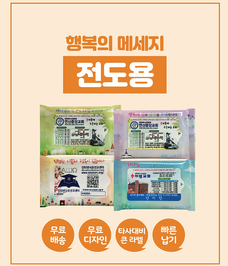 교회 전도 관공서 공공기관 정책 홍보물품 빅사이즈 라벨 물티슈는 타사 대비 확대된 큰 라벨에 무료 디자인 서비스를 제공함과 동시에 빠른 제작과 함께 무료 배송을 원칙으로 진행 됩니다.