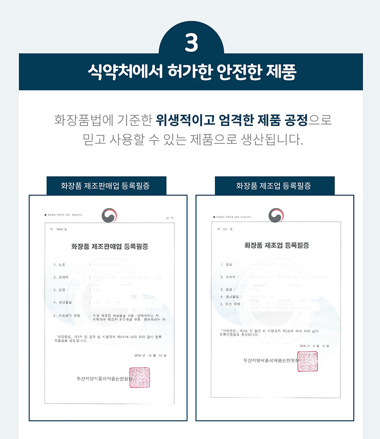 안전하고 깨끗한 제품을 제작하는 환경 역시 최신식 설비와 함께 주위 환경까지 매우 세심하게 관리되는 제조 공정 라인 관리로 위생적인 측면에서는 어떠한 결함이나 부족함이 없는 제품입니다.