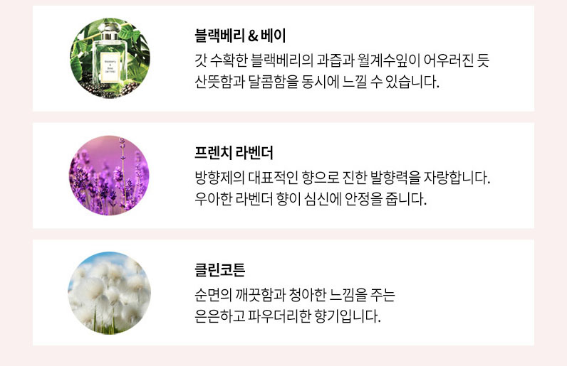 선택의 폭이 넓은 컬러 전사 석고방향제의 프리미엄 향기는 자몽, 블랙체리, 다우니후레쉬, 프리지아, 블랙베리&베이, 프렌치 라벤더, 클린코튼의 총 7가지 향기가 준비되어 있으며, 특성 향기만을 선택하시거나, 여러 향기 베이스를 혼합해서 주문하실 수 있습니다.