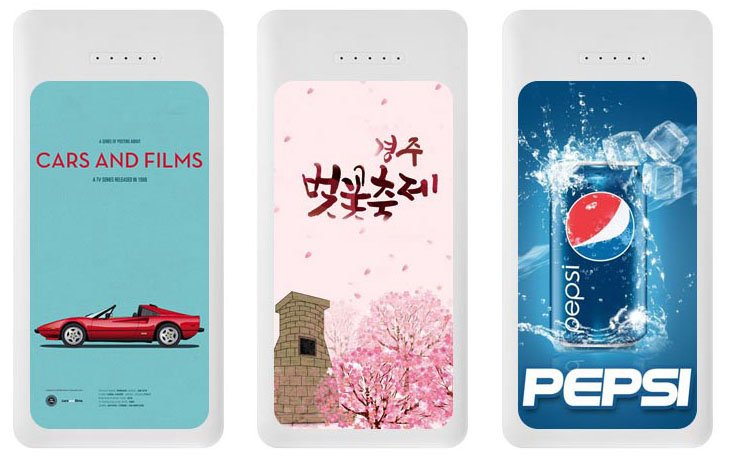 홍보 굿즈 흡착식 무선충전 보조배터리 전사인쇄 풀컬러인쇄는 지역 축제나 브랜드 홍보 내용이나 사진을 실감나게 표현이 가능하고, 정부나 공공기관, 교육기관, 프랜차이즈 홍보 정책 등을 매우 세밀하게 많은 양의 문구와 이미지를 통해 표현이 가능합니다.
