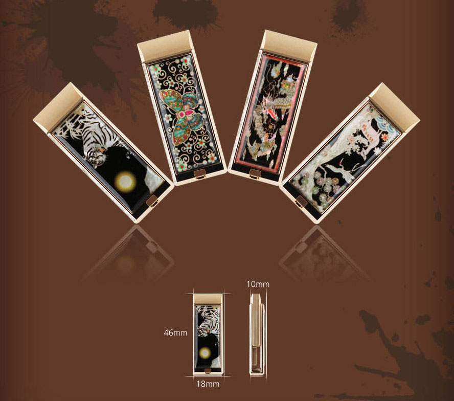 오파츠 자개 USB 메모리는 백호, 당초나비, 사슴송학, 용, 십장생, 하회탈, 목단 꽃나비, 난초문, 독도, 흉배학, 사군자수복문, 잉어 등 12가지 디자인으로 구성되어 있어 소중한 분들께 특별한 선물이 될 수 있는 아이템입니다.