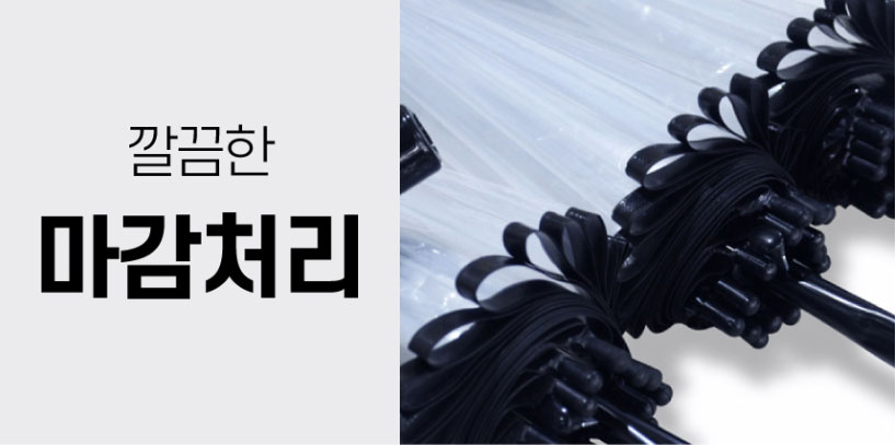 투명한 원단에 다시 블랙 또는 화이트로 마감처리가 꼼꼼하게 되어 있어 오랫동안 깨끗하게 사용할 수 있으며, 손잡이에는 일반 실크 스크린 인쇄가 아닌 레이저 각인으로 브랜드 로고나 기업 로고 또는 회사명이다 단체명을 영구적으로 유지할 수 있습니다.